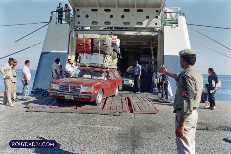 تاریخ ۱۶ آگوست ۱۹۹۰. پناهندگان مصری در مرز عراق و اردن وسایلشان را از اتوبوس برای بازرسی پایین می آورند، این درحالیست که در این مرز هزاران خارجی هم در حال فرار از جنگ عراق و کویت هستند