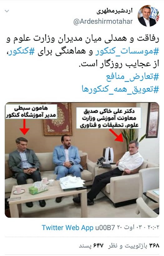 رفاقت و همدلی میان مدیران وزارت علوم و موسسات کنکور و هماهنگی برای کنکور، از عجایب روزگار است.