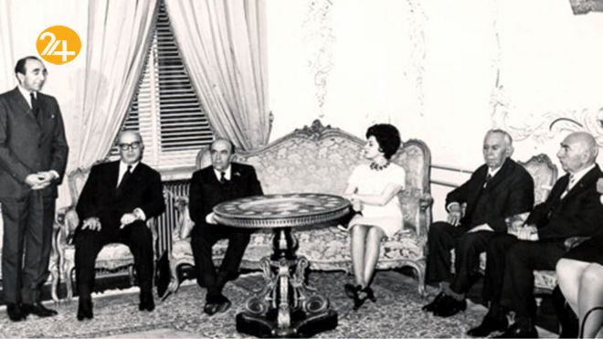 هویدا و همسرش لیلا امامی در کنار سلیمان دمیرل نخست وزیر ترکیه و همسرش. آقای دمیرل از دوستان نزدیک هویدا بود