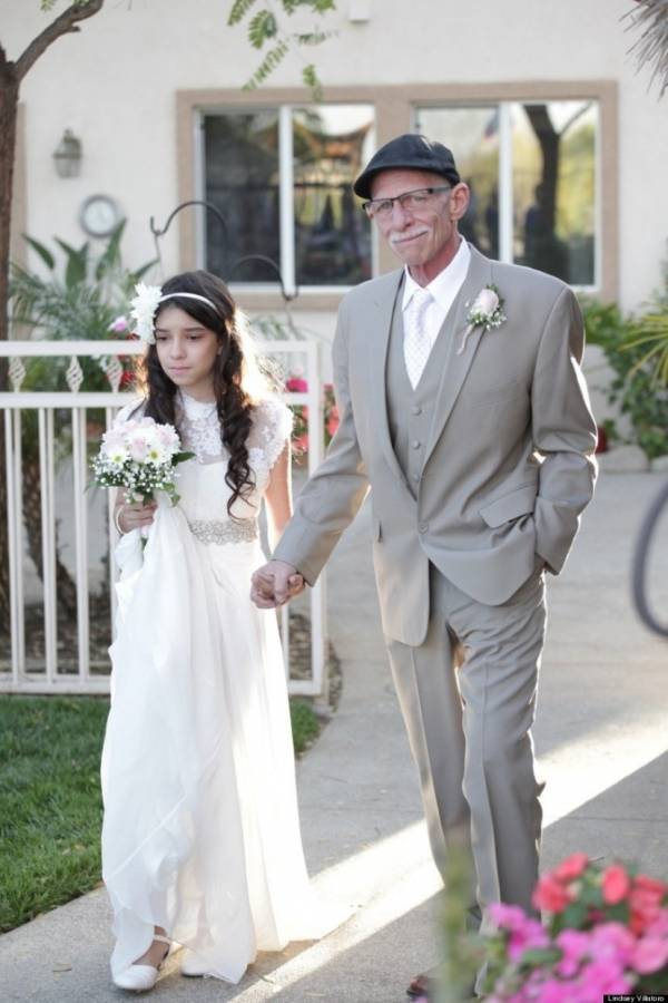 پیرمرد ۶۲ ساله اهل کالیفرنیا یکی از متفاوتترین و در عین حال غم انگیزترین مراسم عروسی را برای دختر ۱۱ ساله اش برگزار کرد.