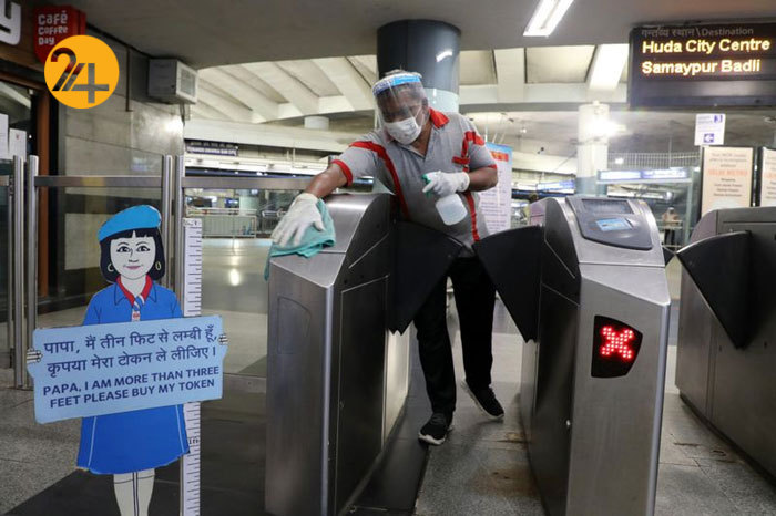رویداد ۲۴ با شیوع ویروس کرونا و قرنطینه خانگی سبک زندگی در بسیاری از کشورها تغییر کرد. در اولین روزهای شیوع کرونا در جهان هند جز آندسته از کشورهایی بود قرنطینه را در کشور اعمال کرد به این معنا که بسیاری از مراکز حمل و نقل بازارها و بزرگترین شرکتهای خصوصی و غیرخصوصی بسته شدند. اما اکنون پس از گذشت ماهها متروهای شهر دهلینو فعالیت خود را از سر گرفتند. متروی دهلی نو همه روزه از ۷ تا ۱۱ صبح و بعد از ظهرها از ۴ تا ۸ شب مسافران درون شهری را جابجا میکنند. در تصاویر روز عکسهایی از نحوه ورود شهروندان دهلینو را با رعایت تمام پروتکلهای بهداشتی ببینید.