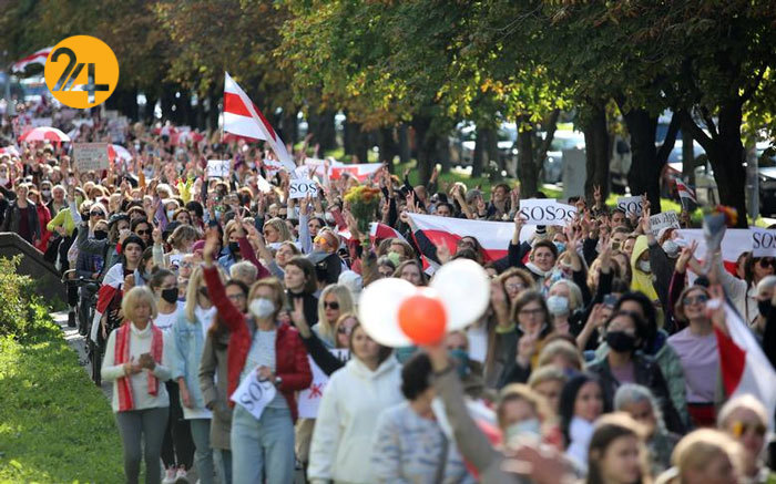 رویداد ۲۴ بیش از ۱۰۰ هزار تن از مردم بلاروس روز یکشنبه در ششمین آخر هفته متوالی اعتراضات علیه رئیس جمهور این کشور در سراسر مینسک دست به راهپیمایی زده و همچنان رهبر بلاروس را برای کنارهگیری از قدرت تحت فشار گذاشتند.
