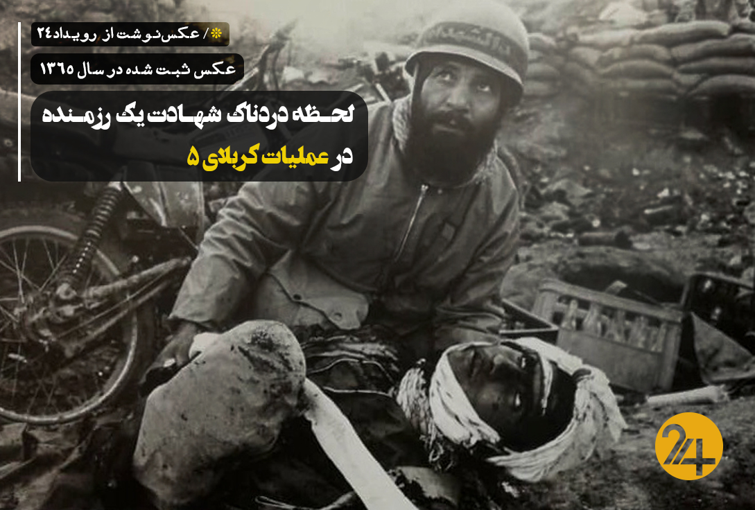 رویداد۲۴ عکس ثبت شده در تاریخ در تاریخ ۱۹ دی ۱۳۶۵ که شهادت یکی از رزمندگان ایرانی لشکر ۱۰ سیدالشهدا در جریان عملیات کربلای ۵ را نشان میدهد.
