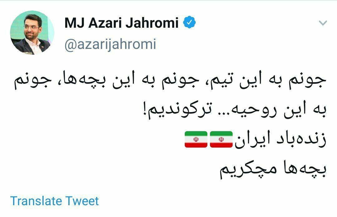 گوناگون » برگزیده کد خبر: ۲۳۳۰۴۳ تاریخ انتشار: ۲۲:۲۲ - ۱۲ مهر ۱۳۹۹ واکنش آذری جهرمی به صعود پرسپولیس محمد جواد آذری جهرمی با انتشار توئیتی به پیروزی تیم پرسپولیس مقابل النصر واکنش نشان داد. خبر های مرتبط برای نجات تولید باید تقاضاهای کاذب از بازار فولاد خارج شود جزئیات بسته حمایتی دانشجویان فردا اطلاع رسانی میشود خبر های مرتبط برای نجات تولید باید تقاضاهای کاذب از بازار فولاد خارج شود جزئیات بسته حمایتی دانشجویان فردا اطلاع رسانی میشود