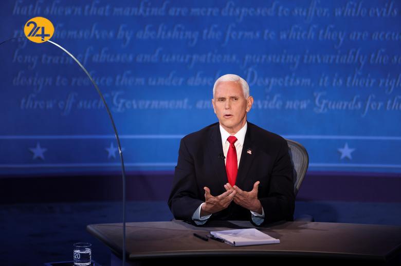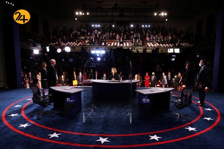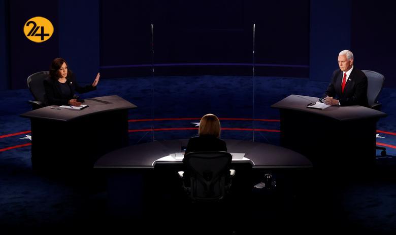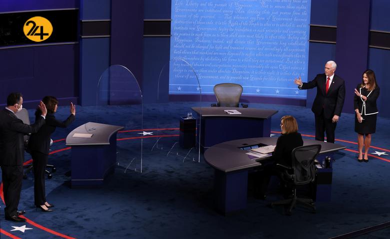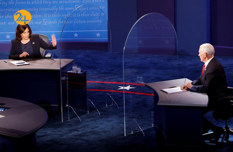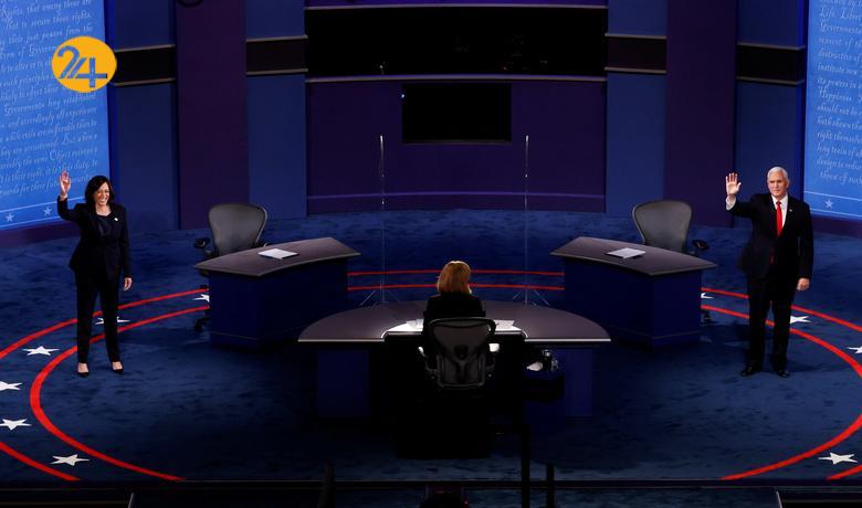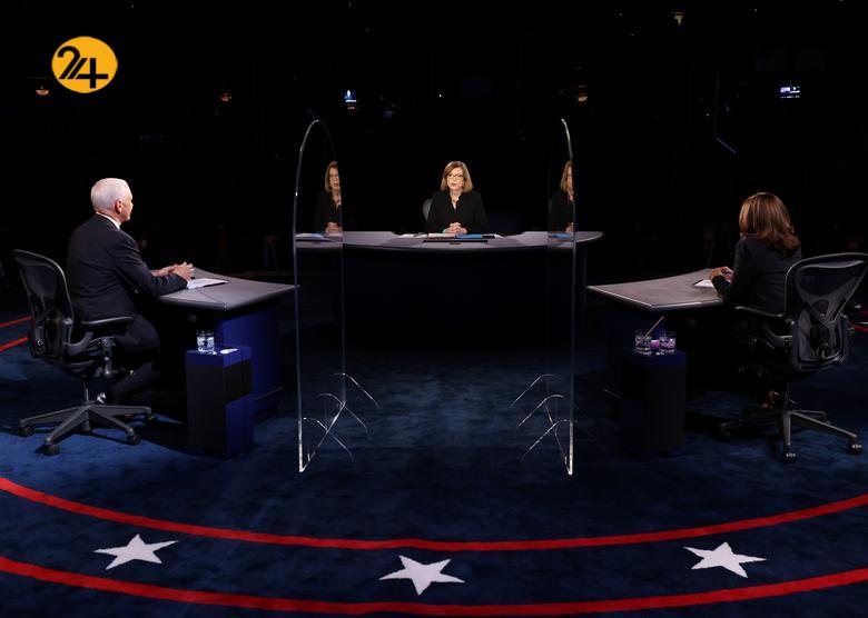 شب گذشته کاملا هریس و مایک پنس، معاونان جو بایدن و دونالد ترامپ ۲ نامزد انتخابات ریاست جمهوری سوم نوامبر آمریکا در مقابل یکدیگر قرار گرفتند و به مناظره پرداختند. این مناظره تحت تدابیر بهداشتی ناشی از شیوع ویروس کرونا برگزار شد و یک مانع شیشه‌ای میان هریس و پنس قرار داده شده بود. منبع/ رویترز