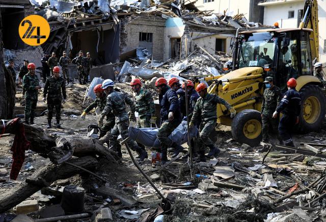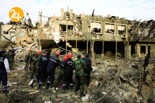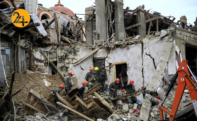 با این حال شنبه شب خبرگزاری اسپوتینک از شنیده شدن دو صدای انفجار در شهر خانکندی/استپاناکرت پایتخت منطقه قرهباغ خبر داد. در تصاویر روز عکس هایی که پس از آتش بس میان ایروان و باکو در حالیکه نیروهای امدادی و مردم برای نجات جان هموطنانشان بسیج شده اند که آنها را از زیر آوارهایی که مورد اصابت راکتهای جنگی قرار گرفته اند را نجات دهند.