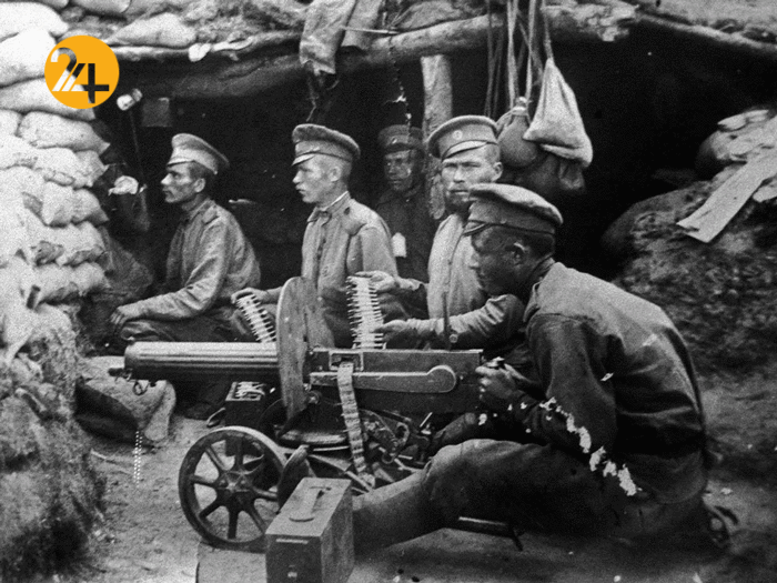 تیربار جنگ جهانی اول; با شروع جنگ جهانی اول بسیاری از کشورها از تیربار استفاده کردند. در آن زمان برای خنک کردن تیرباز ار آب استفاده میشد. تیربار حاضر در جنگ جهانی اول قادر به شلیک ۵۵۰ گلوله در هر دقیقه بود. اما وزن زیادی داشت و چهار تا شش نفر باید آن را حمل میکردند