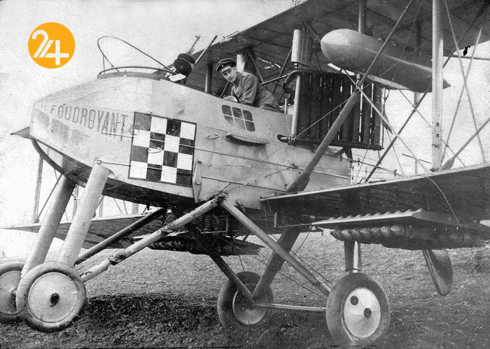 جنگنده بمب افکن جنگ جهانی اول؛ جنگ جهانی اول عمده نبردهایی بود که انسان از سلاحهای مهاجمی و آفندی همچون هواپیما استفاده کرد. بمبافکنهای آن روزها دید کمی را در اختیار خلبان قرار میداند و تنها قادر به حمل چند بمب کوچک بودند. در جلو و عقب این هواپیماهای جنگی دو تیربار نصب شده بود که تیربار جلو برای حمله و تیربار عقب برای دفاع کاشته شده بود.