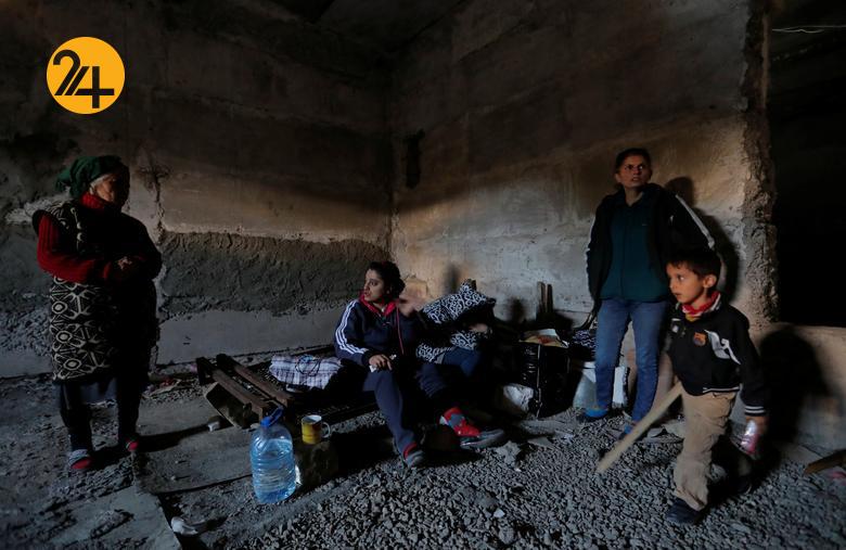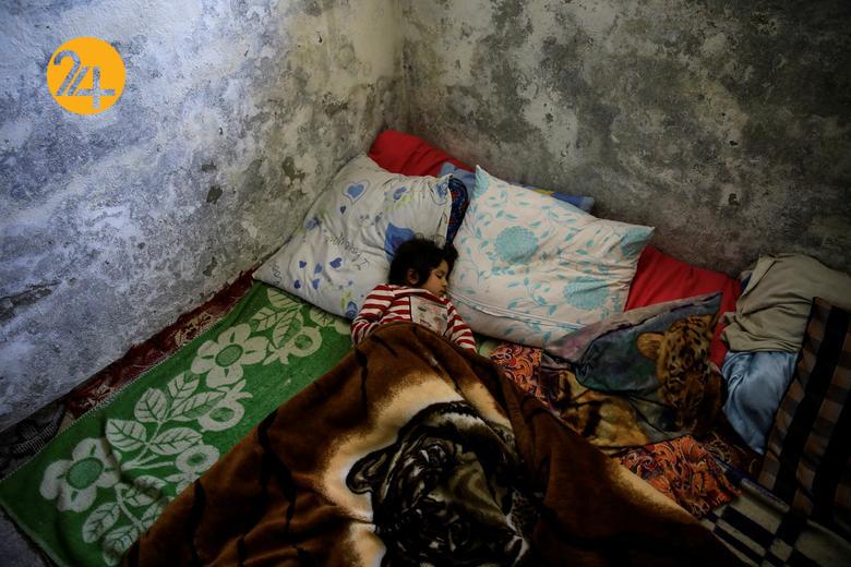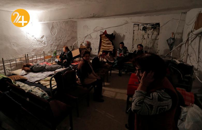 مردمی که از شهر ترتر آذربایجان به منطقه ترکمن باردا فرار کردهاند در سالن ورزشی یک دبیرستان پناه گرفتهاند