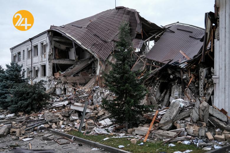 اتومبیلهای خارج از یک بیمارستان در ارمنستان که توسط نیروهای ارتش آذربایجان در جنگ قرهباغ با خاک یکسان شده است
