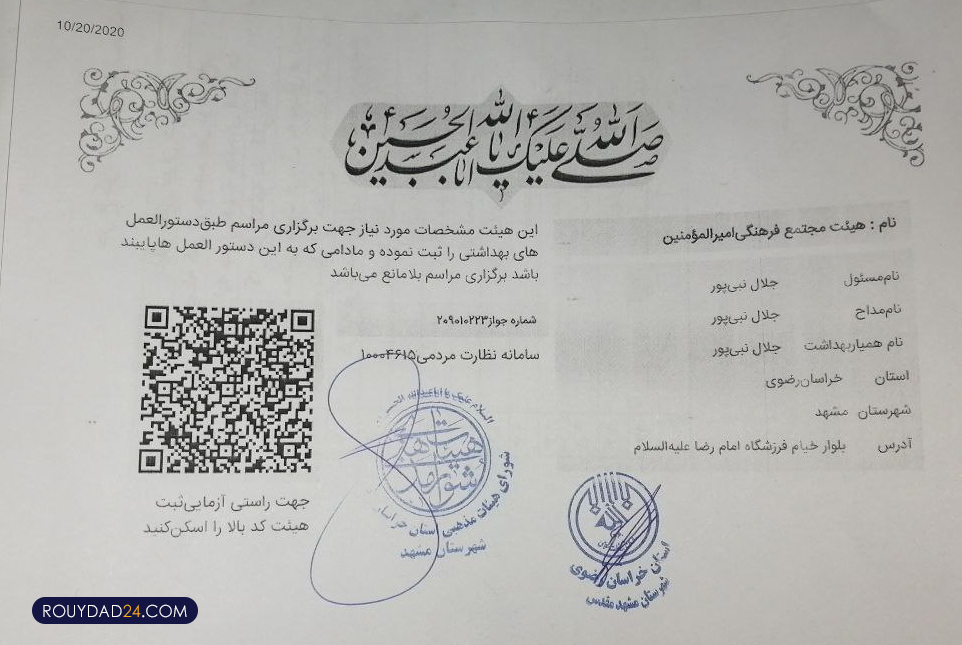 مجوز چنین مراسمی درحالی صادر شده که مقامات این شهر ورود به مشهد را در زمان تشییع پیکر محمدرضا شجریان در کمتر از چند ساعت ممنوع اعلام کردند.