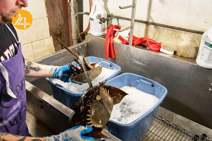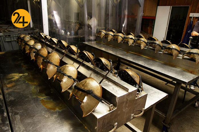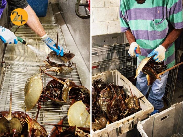 برای استخراج خون این خرچنگها، پوستهٔ نزدیک به قلبشان را سوراخ میکنند و پس از خارج کردن حدود ۳۰ درصد از خونشان آنها را در طبیعت رها میکنند. این کار باعث میشود ۱۰ تا ۳۰ درصد این خرچنگها از بین بروند و زاد و ولد مادههایی که زنده میمانند سخت میشود.