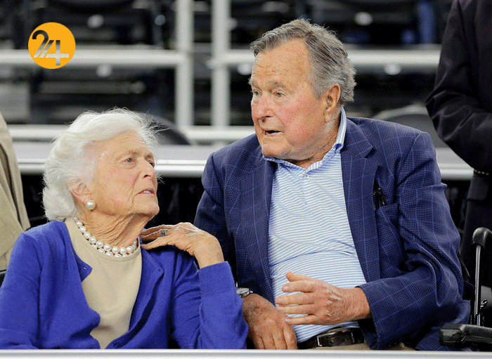 تصویری از باربارا بوش و جرج بوش در ماه مارس سال ۲۰۱۵ میلادی