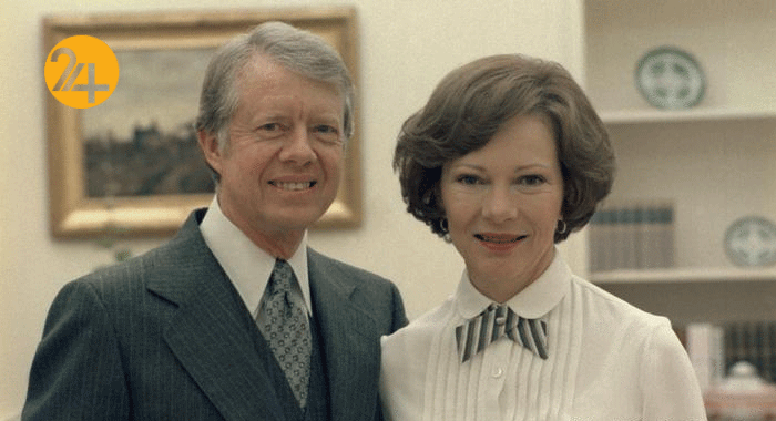 تصویری از روزالین کارتر در کنار همسرش جیمی کارتر در اواخر دهه هفتاد میلادی در کاخ سفید