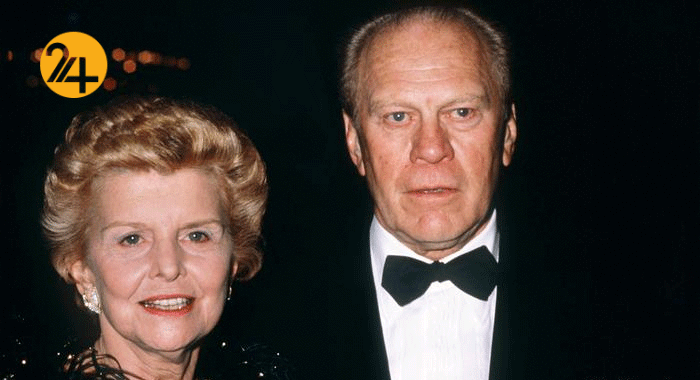 تصویری از بتی فورد در کنار همسرش، جرالد فورد در سال ۱۹۸۷ میلادی