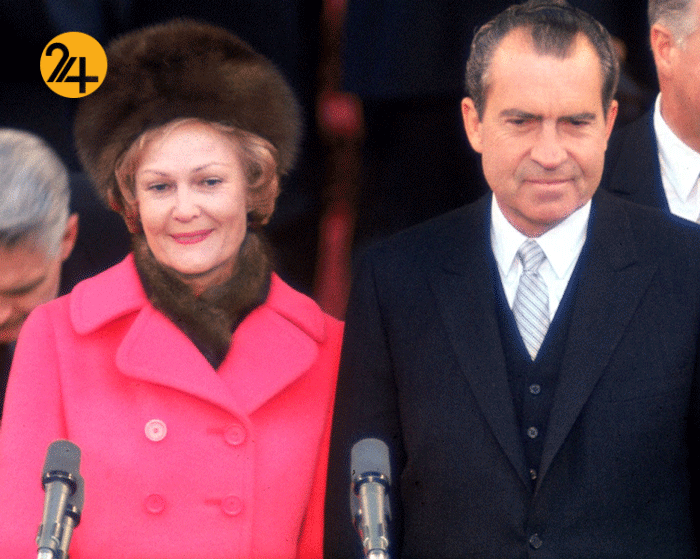 تصویری از پت نیکسون در کنار همسرش ریچارد نیکسون در کاخ سفید