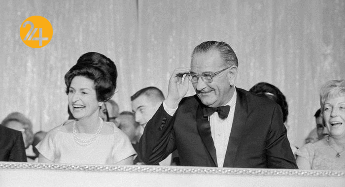 تصویری از کلاودیا جانسون و همسرش لیندون جانسون در سال ۱۹۶۵ میلادی