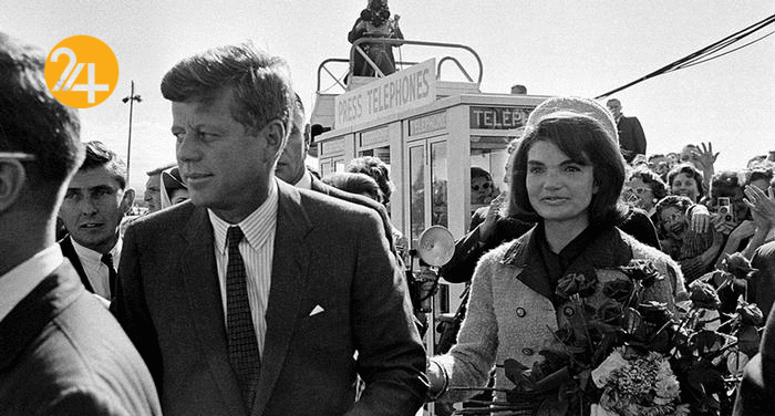 ژاکلین کندی و جان اف کندی در هنگام ورود به فرودگاه دالاس در روز ۲۲ نوامبر ۱۹۶۳؛ روزی که کندی ترور شد