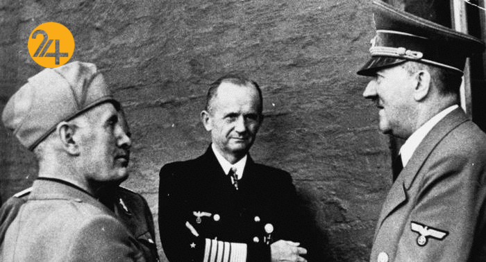 کارل دونیتس، فرمانده نیروی دریاییف کارل دونیتس که در تصویر در وسط هیتلر و موسیلینی قرار دارد، فرمانده نیروی دریایی ارتش نازی بود. او به‌خاطر نقشش در حملات زیردریایی‌های آلمانی در اقیانوس اطلس شمالی، در دادگاه نورنبرگ محاکمه و به جرم جنایات جنگی به ده سال زندان محکوم شد. او تا پایان عمرش به حزب ناسیونال سوسیالیسم آلمان وفدار ماند و در عین حال وانمود می‌کرد که فردی نظامی بدون باورهای سیاسی است. دونیتس در سال ۱۹۸۰ درگذشت