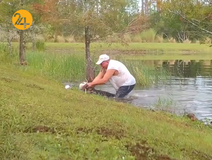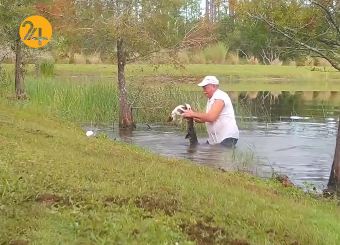 استیو ایروین مرد شجاع ۷۴ ساله اهل فلوریدا سگ کوچولوی سه ماههاش را که در کنار تالاب پشت خانهاش طعمه تمساح شد را بعد از ۲۰ ثانیه درگیری و تقلا از دهان این جانور بیرون کشید. در ویدیوی زیر لحظه نجات شجاعانه این سگ کوچولو را توسط استیو ایروین ببینید.