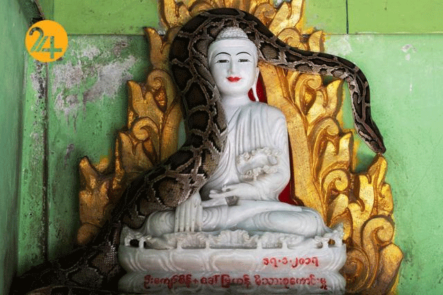 معبد، پناهگاه مارهای کبری، پیتون و افعی . مردم میانما در این معابد آرزوهایشان را با مارها درمیان میگذارند و مورد رحمت مارها قرار میگیرند