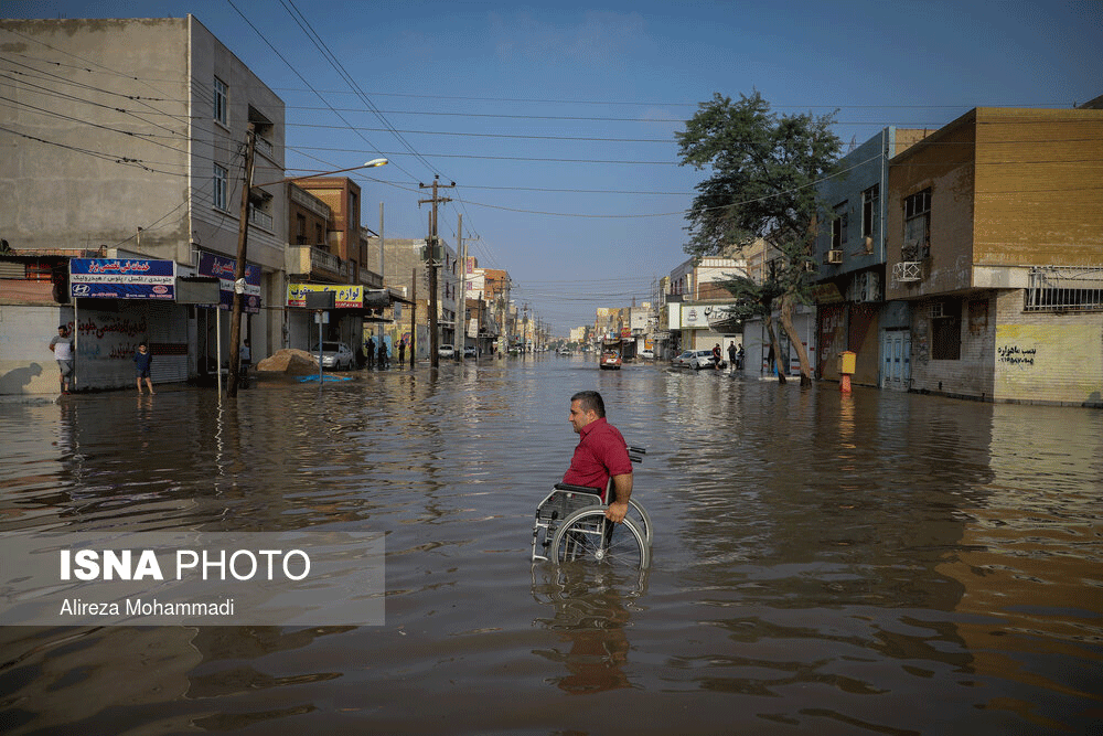 بارندگی در اهواز باعث آبگرفتگی در بسیاری از مناطق شهری شده است. در برخی مناطق از جمله در منطقه معین زاده فاضلاب شهری وارد منازل شده است