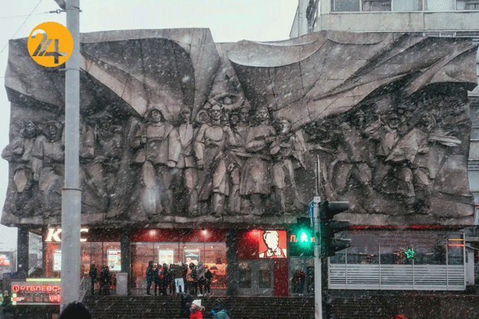 نقش برجسته پرومتئوس (خدای آتش در اساطیر یونان باستان) بر روز کاخ فرهنگ در روسیه _ این بنا در سال ۱۹۷۲ ساخته شده است