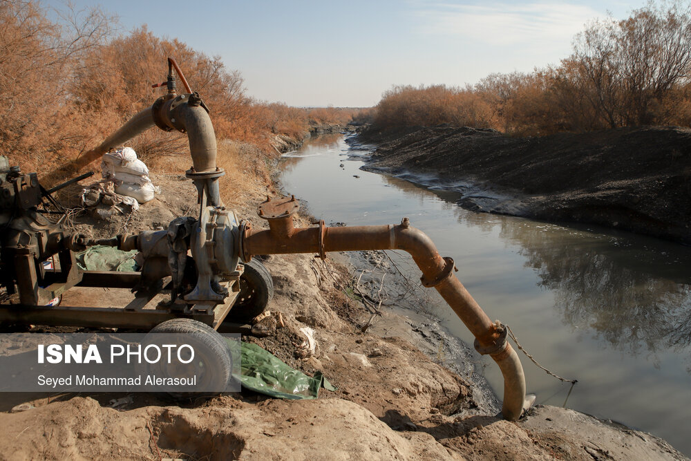 پمپاژ آب به زمینهای کشاورزی از داخل آبهای آلوده رودخانه کشف رود انجام میشود