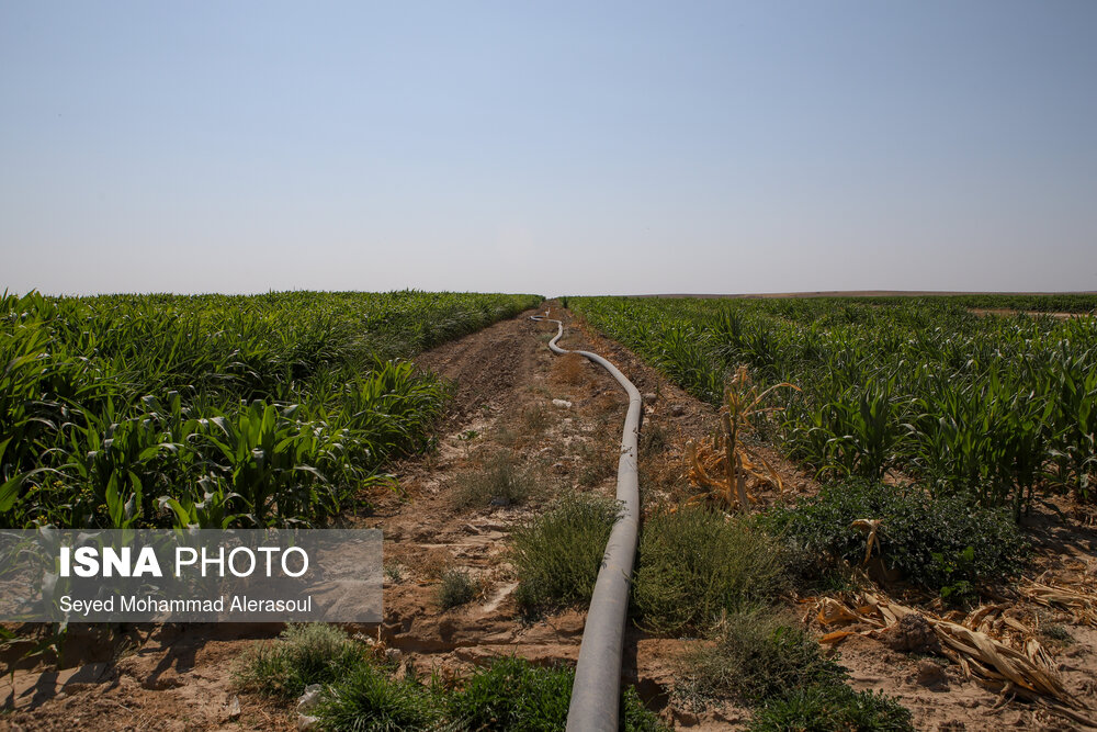زمینهای کشاورزی که از آب انتقال داده شده با لولهها آبیاری میشوند