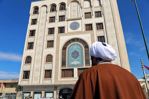 ساختمان با دیدن خبرنگارانی که هرکدام اطراف یک روحانی حلقه زدهاند، توقفی