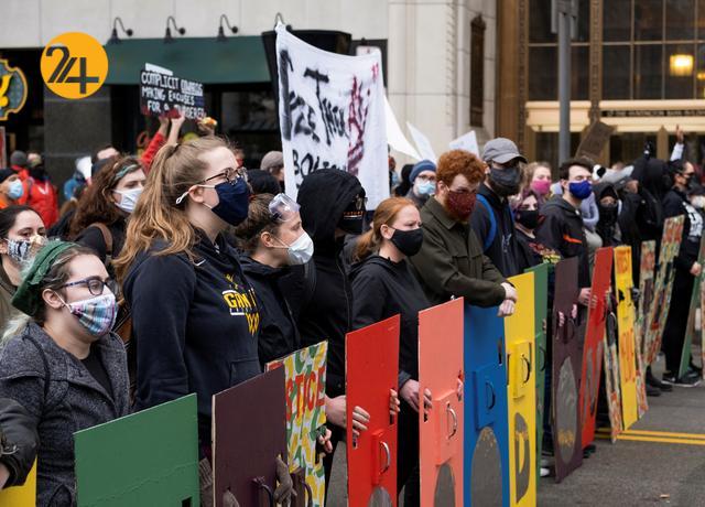معترضان با شعارهای عدالتخواهانه، صلح طلبانه و ضد نژادپرستی حرفهای اعتراضی خود را بیان کردند.