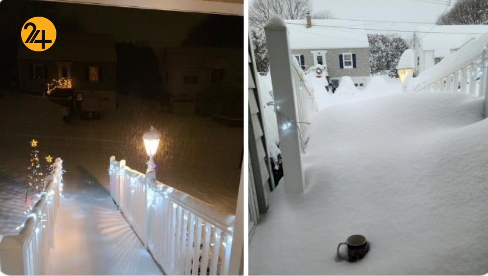 رویداد ۲۴ در اثر بارش بیوقفه که ساعات متمادی به طول انجامید، ارتفاع برف در این ایالت به بیش از یک متر رسید و بسیاری از خودروها زیر لایه قطوری از برف مدفون شدند. مقامات شهری گفتهاند این میزان بارش برف که از سال ۲۰۰۹ بدین سو بیسابقه بوده است، با تمام میزان برف باریده شده در سال گذشته برابری میکند. در تصاویر روز عکس هایی از ایالت نیویورک را که در برف مدفون و سفید پوش شده است را ببینید.