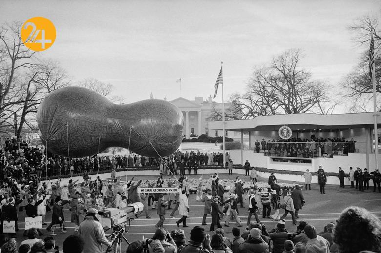 سال ۱۹۷۷ واشنگتن مراسم تحلیف جیمی کارتر، در مراسم سوگند کاتر شکل یک بادام زمینی بزرگ را برای نمایش در مجلس آوردند. او در یک خانواده صاحب مزرعه بادام زمینی، فعال در امور سیاسی و مومن به کلیسای باپتیستی پرورش یافت