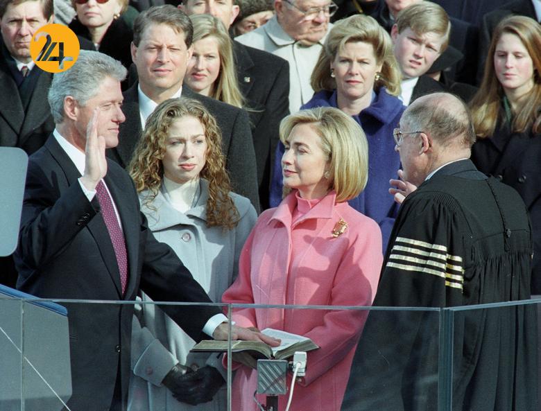 روز ۲۰ ژانویه ۱۹۹۷ بیل کلینتون در مراسم تحلیف خود درحالیکه در کنار همسرش هیلاری کلینتون و دخترش چلسی کلینتون و جمعی از شرکتکنندگان سوگند یا میکند