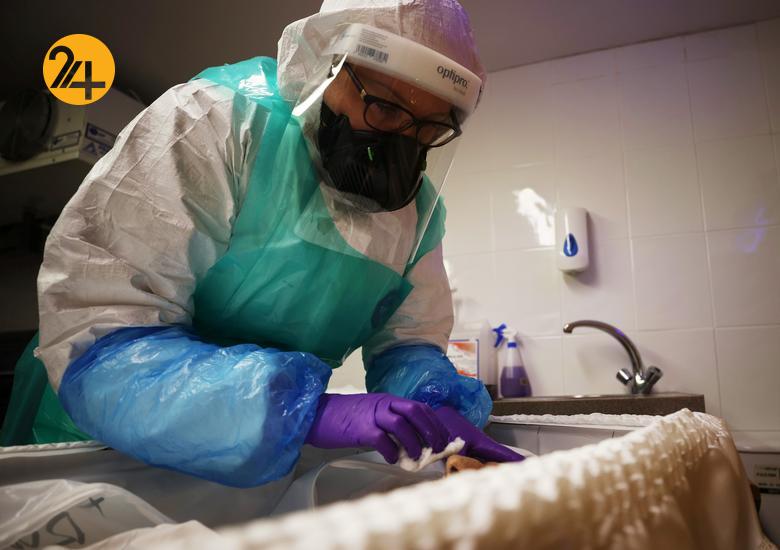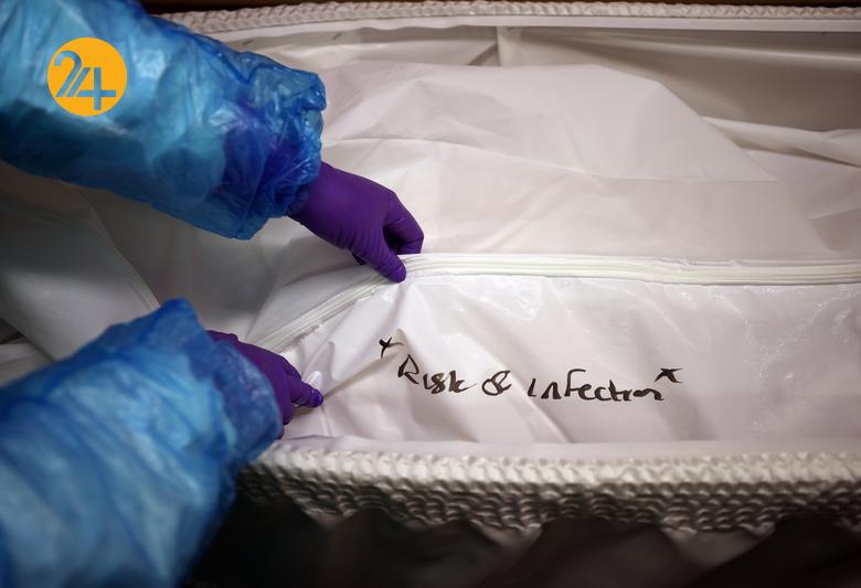 سازمان بهداشت عمومی انگلستان گفت: «کسانی که با اجساد سر و کار دارند، باید بدانند که خطر کمی از احتمال ابتلا به ویروس از طریق مایعات مترشحه از بدن متوفی و بافتهایی که به ویروس کرونا مبتلا بودهاند، وجود دارد.»
