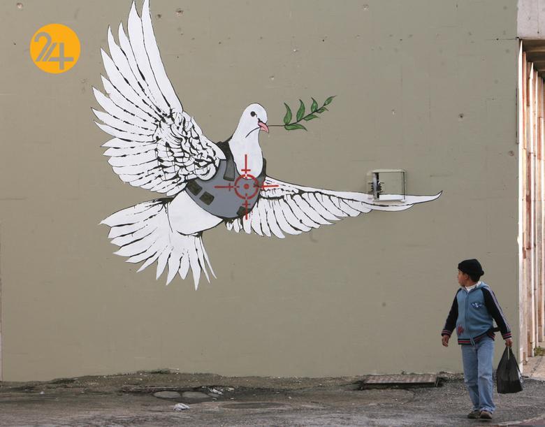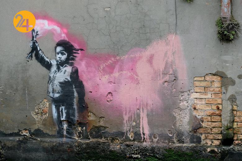 گرافیتی‌های وندالیسم بنکسیرویداد‌۲۴ هنر خیابانی بنکسی طعنه‌آمیز و هجویه‌هایش خرابکارانه است. هنر او آمیزه‌ای از طنز سیاه و گرافیتی است که با تکنیک گرده برداری ویژه‌ای خلق می‌شود. آثار هنری او با محتوای سیاسی و اجتماعی در خیابان‌ها، دیوارها، و پل‌ها در شهر‌های مختلف دنیا به تصویر درآمده‌است.