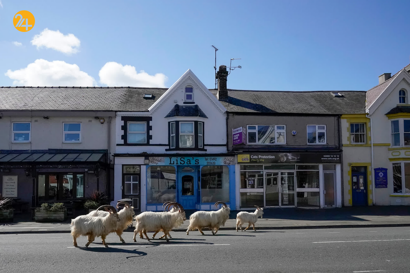 ماه مارس ۲۰۲۰ بزهای کوهی در ولز در روزهایی که بریتانیا قرنطینه است