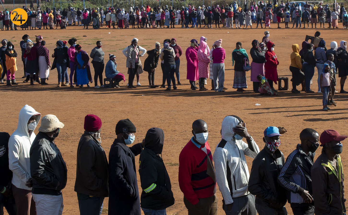 مردم جنوب آفریقا در صف دریافت جیره غذا در روزهای شیوع کرونا