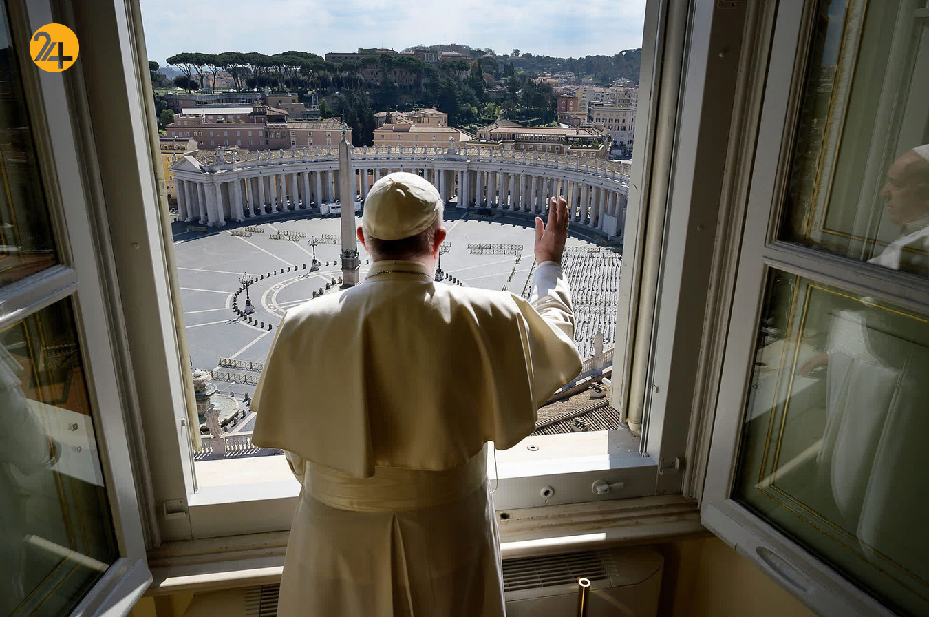 پاپ فرانسیس درحال دعای خیر کردن برای مردم در میدان سنت پیتر رم