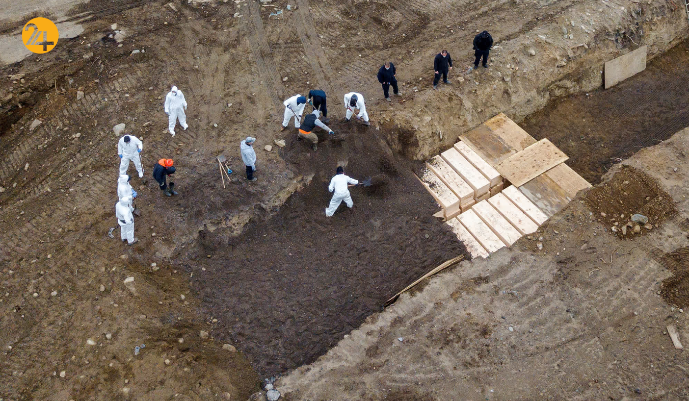 دفن دسته جمعی کروناییهای بینام و نشان در قبرستان هارت آیلند در نیویورک که بزرگترین گورستان آمریکا بشمار میرود