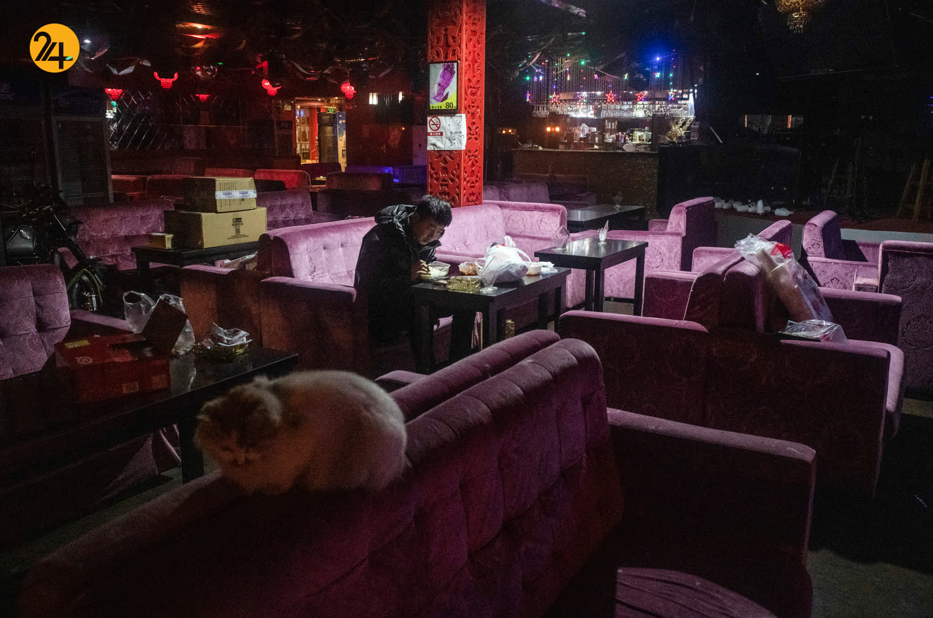 مردی در یک بار در پکن چین درحالیکه سازمان بهداشت جهانی دو ماه است که رسما شیوع ویروس کرونا را اعلام کرده است
