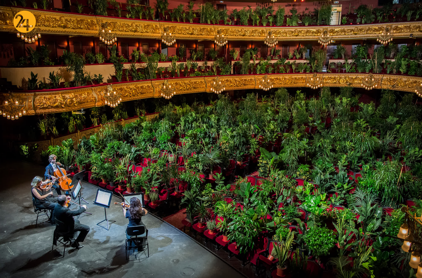 اجرای موسیقی برای گیاهان مخاطب در روزگاری که همه مردم اسپانیا بخاطر شیوع کرونا در خانه ماندهاند