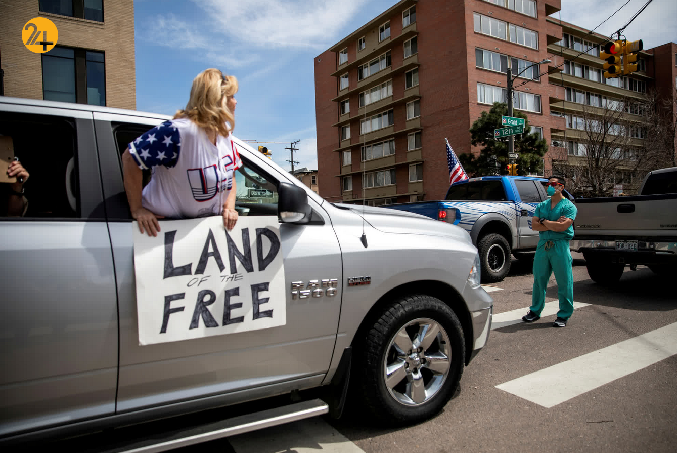 یکی از اعضای کادر درمان آمریکا در مقابل معترضان ضد قرنطینه ایستاده است و مانع ادامه اعتراضات شده است. این پرستار با این حرکت خود بدون هیچ حرفی به مردم میگوید در خانه بمانید و از خود محافظت کنید تا ما هم در ایمن میدان حفظ شویم