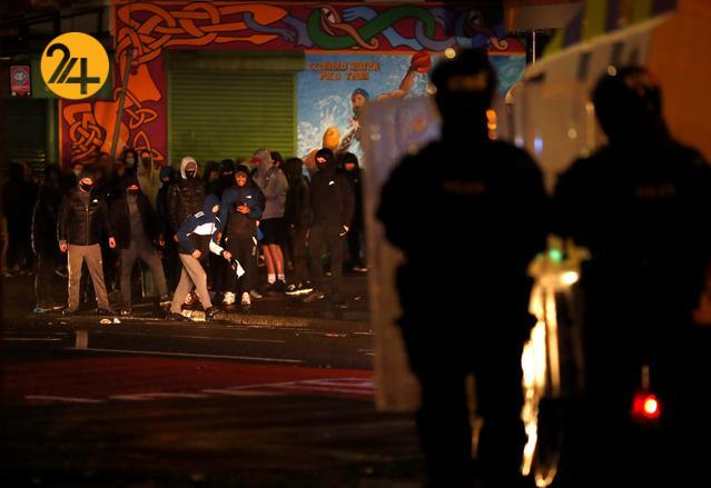 پلیس با صدور بیانیه‌ای اعلام کرد که گروههای وفادار به دولت انگلیس  در حومه شهر بلفاست به سمت ماموران آجر و بطری پرتاب کرده و سطل آشغال آتش زدند.
