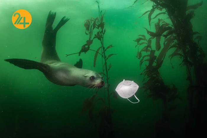 کسب رتبه اول در بخش محیط زیست (بازی شیر دریایی با ماسک در مونتری ، کالیفرنیا) ، عکاس : Ralph Pace از آمریکا