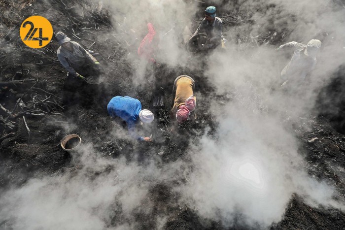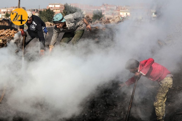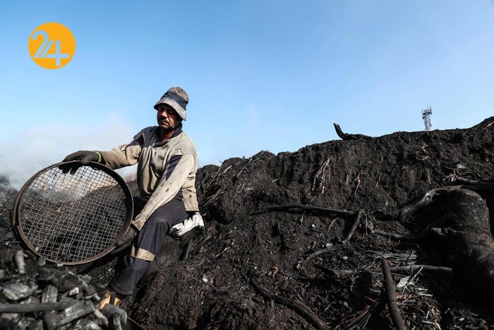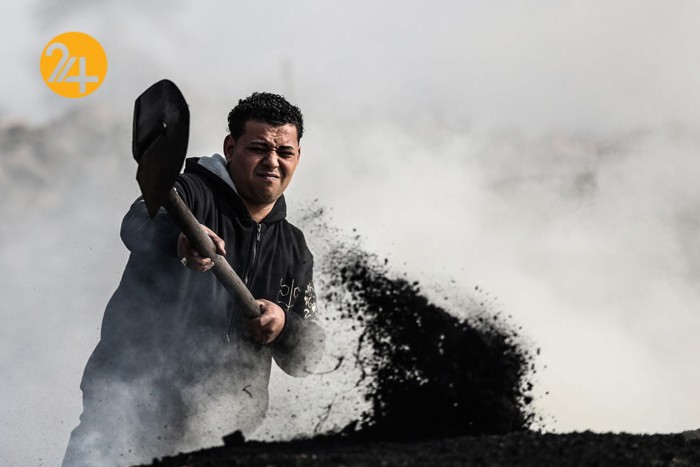 رویداد۲۴ کارگران مصری از پیر و جوان در روستای اینشاس در نزدیکی قاهره با حقوق ماهانه ۱۲۵ دلار، بدون دستکش، ماسک و بیمه درمانی ناگزیرند در کارگاه زغال سنگ کار کنند تا در اقتصاد بحران زده این روزهای مصر بتوانند نانی پای سفره خانواده هایشان ببرند؛ و با استفاده از وسایلهای مانند بیل و صافی با امکانات کم قطعات زغال سنگ را جدا و درون کیسهها قرار میدهند