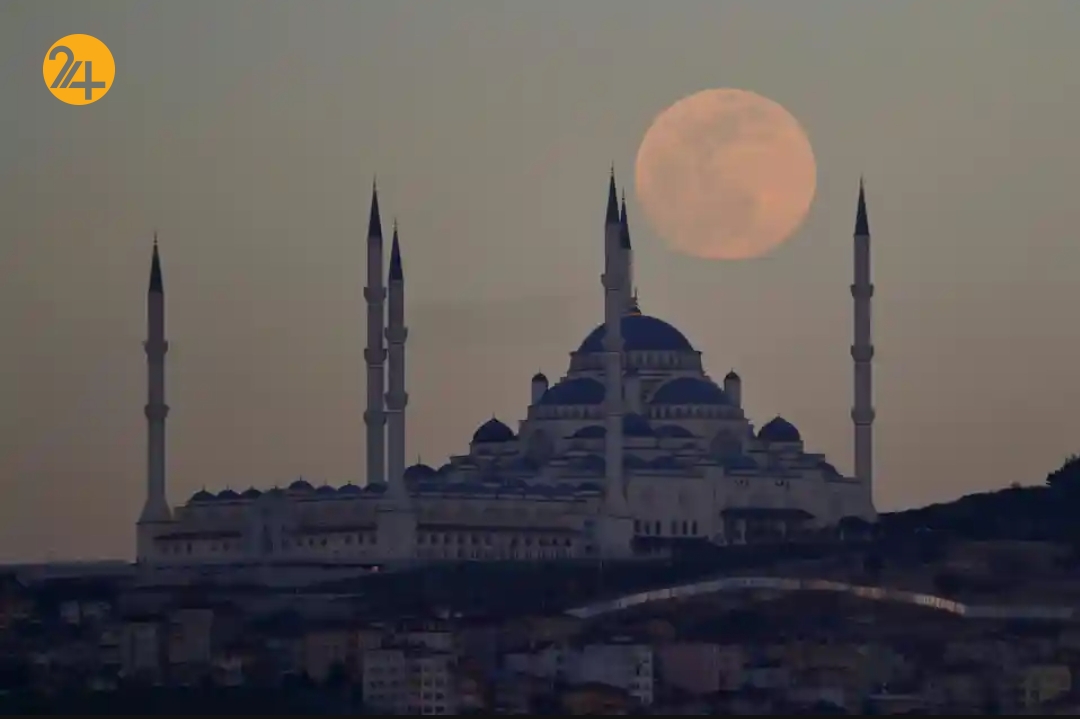 ابرماه صورتی بر فراز مسجد کاملیکا( بزرگترین مسجد ترکیه) در شهر استانبول عکاس: Murad Sezer/Reuters
