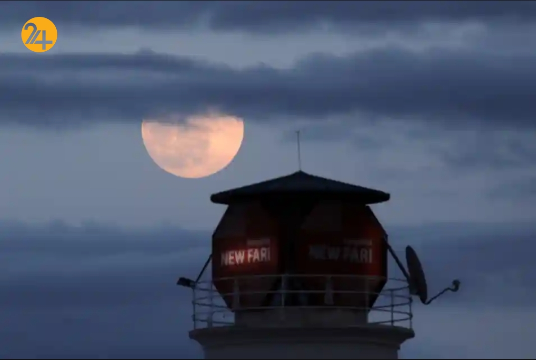 ابرماه بر فراز فانوس دریایی تیرانا در آلبانی. عکاس: Florion Goga/Reuters