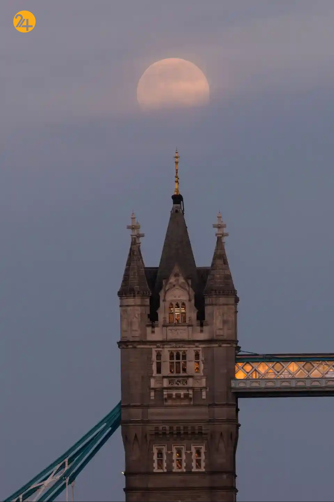 ابرماه بر فراز تاور بریج یا پل برج( پل برج نام یکی از مشهورترین سازه‌ها و پل‌های لندن، پایتخت انگلستان است که بر روی رود تیمز ساخته شده‌است) عکاس: WIktor Szymanowicz