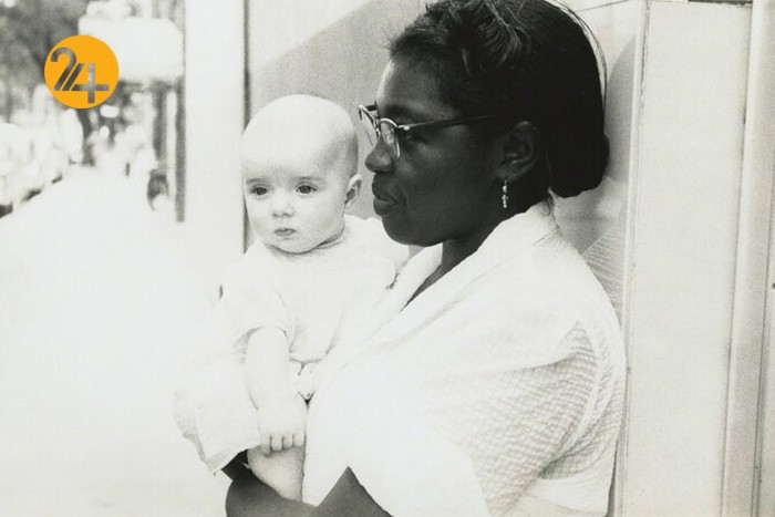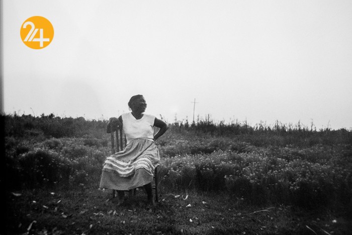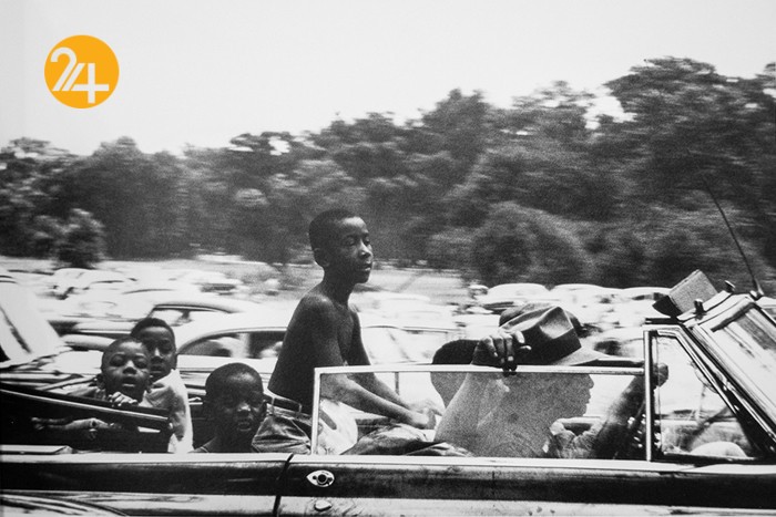 فرانک دربارهی این عکس گفته: «این از عکسهای محبوبم است. روی چمن نشسته بودم، پشت آنها، بعد او به عقب نگاه کرد … آن شهر سفید و این آدمهای سیاه …. فضای [بین شهر و این دو آدم]، و… من [با عکاسیام این وضع را] به هم زدم. من یک مزاحمم.»